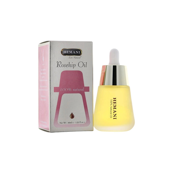 Experience the benefits of HEMANI ROSEHIP OIL. Made with 100% pure rosehip oil, this 40ml bottle is rich in essential fatty acids and antioxidants. Known for its anti-aging properties, this oil helps improve skin texture and reduce the appearance of scars and wrinkles. Try it today for a natural and radiant glow.