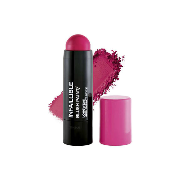 LOréal Paris Infallible Paint Chubby Blush, a cream-to-powder blusher with buildable, highly pigmented finish. Gliding onto skin in one stroke, the long-wearing blusher delivers a natural pop of colour that can be built upon for more intense results.