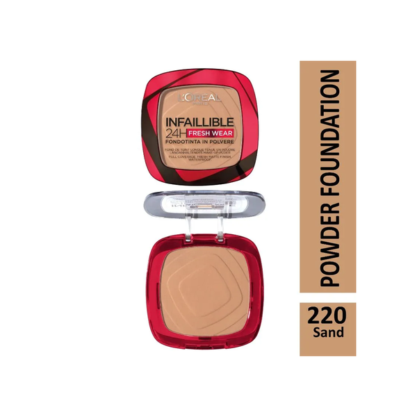 Infallible Up to 24H Fresh Wear Foundation in a Powder’s weightless texture gives full coverage and a natural, matte finish that looks fresh hour after hour. The formula feels breathable and light, leaving skin feeling comfortable for up to 24hrs.