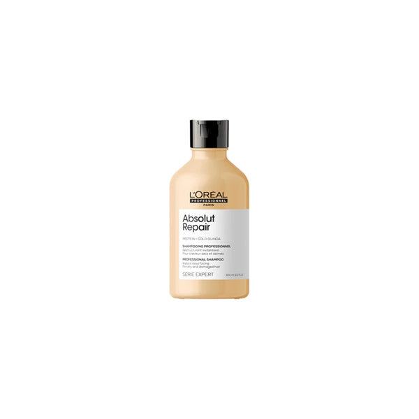 The LOREAL PRO ABSOLUT REPAIR GOLD SHAMPOO in a 300ml bottle is a professional-grade solution for damaged hair. Its advanced formula, enriched with gold quinoa and protein, repairs and strengthens hair, leaving it beautifully smooth and shiny. Scientifically proven to reduce breakage by 77%. Say goodbye to damaged hair with LOREAL PRO ABSOLUT REPAIR GOLD SHAMPOO.