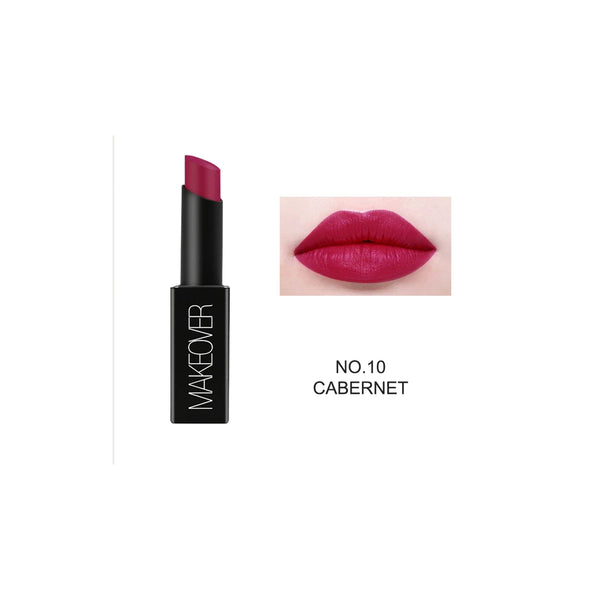 Intensify your look with MAKEOVER LIPSTICK ROUGE MATTE 10 CABERNET. With its rich, matte finish, this lipstick adds a touch of sophistication to any outfit. Packed with pigments, it provides long-lasting color that stays put all day. Elevate your makeup routine with this bold and beautiful shade.