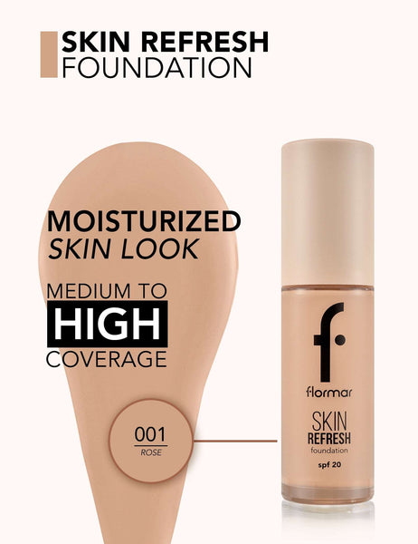 Flormar Skin Refresh SPF 20 Foundation is a thin and liquid textured, comfortable and long-lasting foundation with a natural finish, warm undertone, moisturizing effect, high color pigments and plant-derived extracts, and an illuminating effect suitable for all skin types.