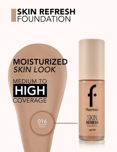 Flormar Skin Refresh SPF 20 Foundation is a thin and liquid textured, comfortable and long-lasting foundation with a natural finish, warm undertone, moisturizing effect, high color pigments and plant-derived extracts, and an illuminating effect suitable for all skin types.