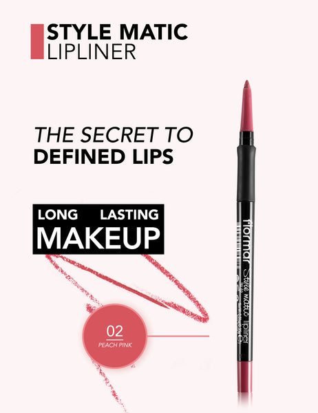 Achieve longlasting,intense colors on your lips with Style Matic Lipliner that offers spectacular coverage! The lipliner,which is easytouse thanks to its twist up mechanism,is available in six different color options to allow you to achieve the perfect harmony with your lipstick. Smooth and defined lips await you with Flormar Style Matic Lipliner,which contains special oil in its formula that offers longlasting stay and velvety softness!