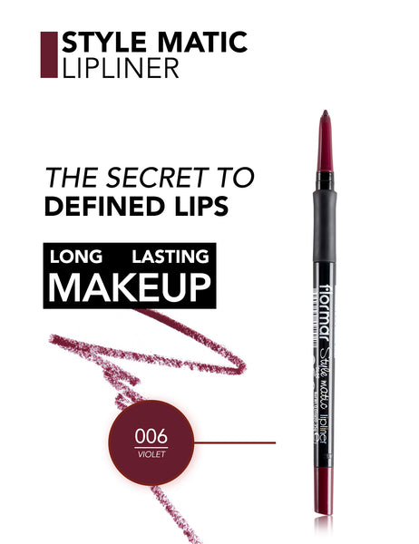 Achieve longlasting,intense colors on your lips with Style Matic Lipliner that offers spectacular coverage! The lipliner,which is easytouse thanks to its twist up mechanism,is available in six different color options to allow you to achieve the perfect harmony with your lipstick. Smooth and defined lips await you with Flormar Style Matic Lipliner,which contains special oil in its formula that offers longlasting stay and velvety softness!