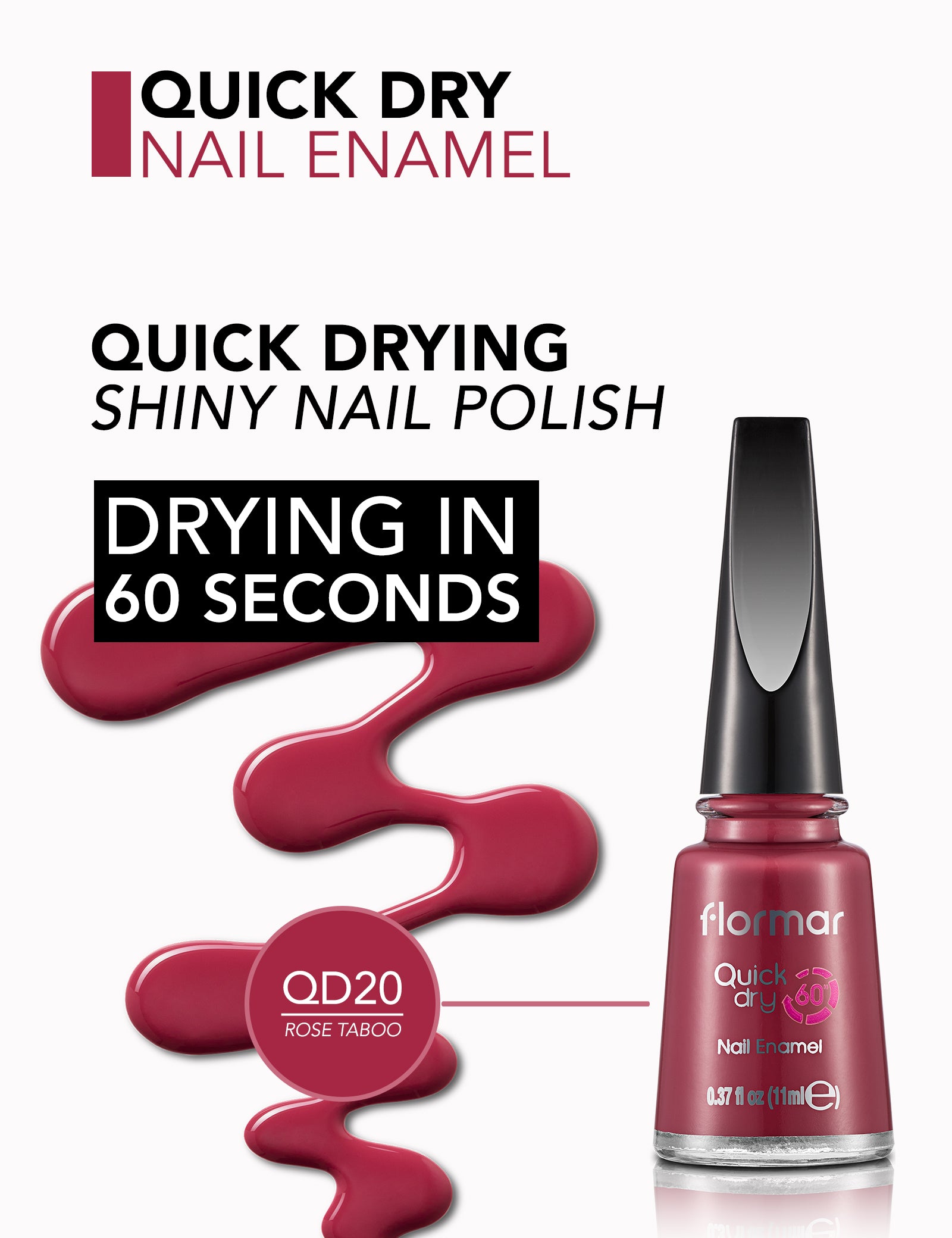 Drying in one minute,Quick Dry Nail Enamel gives a shiny and colorful look. Flormal quick dry nail polish has a longwear performance on the nails thanks to its resistance against the external factors.