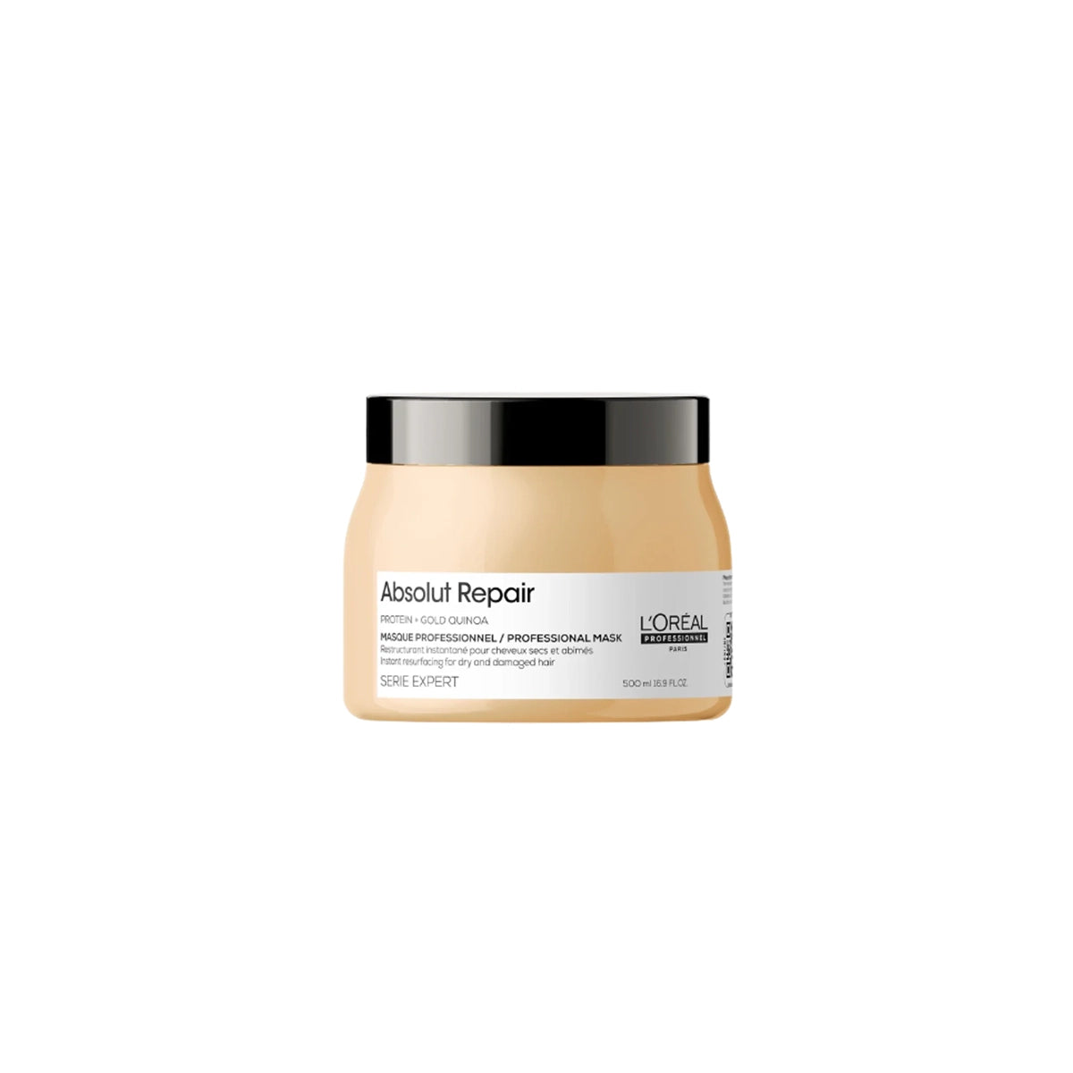 Transform your damaged and dry hair with LOREAL PRO ABSOLUT REPAIR GOLD MASQUE 500ML. The luxurious masque is designed to deeply nourish and repair hair, leaving it smooth, shiny, and healthy. With its advanced formula, it restores up to 77% of damaged hair, providing long-lasting results. Give your hair the care it deserves with this professional masque.