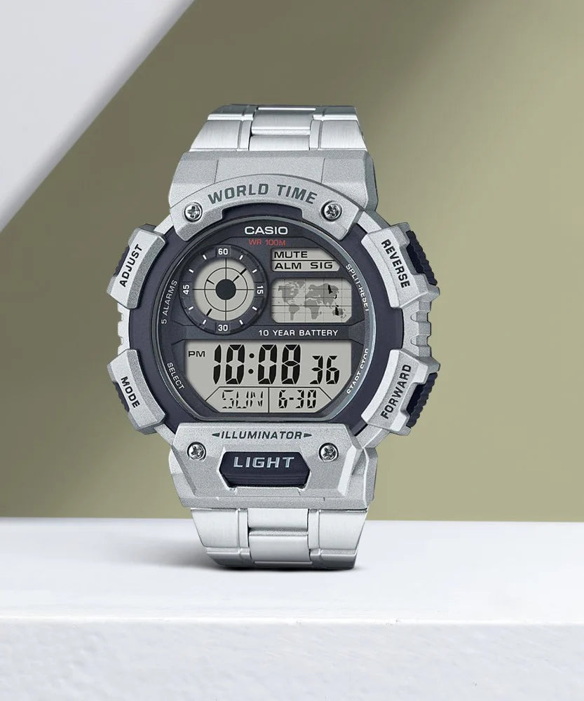 Experience the perfect combination of style and functionality with the Casio Youth Series AE-1400WH-1AVDF (D152) Digital Watch. With a 10-year battery life and 100-meter water resistance, this watch is designed to withstand any adventure. The stopwatch, 5 alarms, and LED light make it a versatile timepiece, while the world map feature allows you to easily check the time in different cities. Stay on time and on trend with this sleek and durable watch.