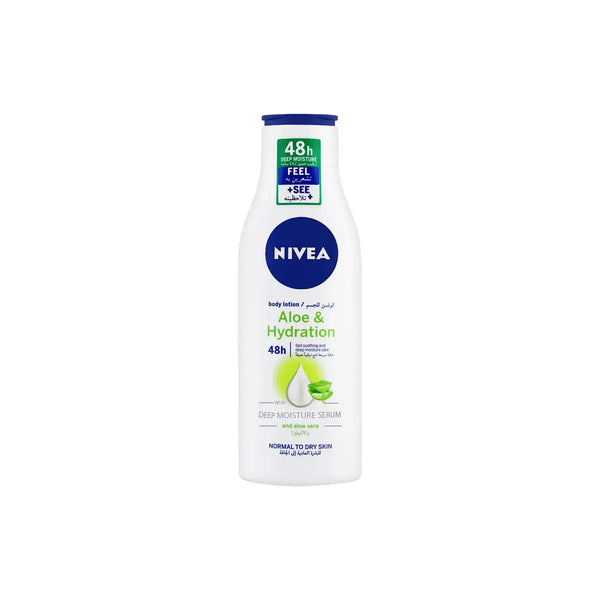 This NIVEA BODY LOTION 250ML provides deep hydration, thanks to its expertly crafted formula featuring Aloe Vera. Designed by industry professionals, this lotion offers a scientifically proven solution for dry skin. With a convenient 250ML size, this product is perfect for replenishing moisture on the go.