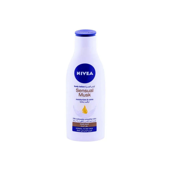 Experience the luxurious and sensual scent of musk with our NIVEA Body Lotion. This 250ml bottle provides deep moisturization and leaves your skin feeling soft and nourished. Indulge your senses while nourishing your skin with our Sensual Musk formula.