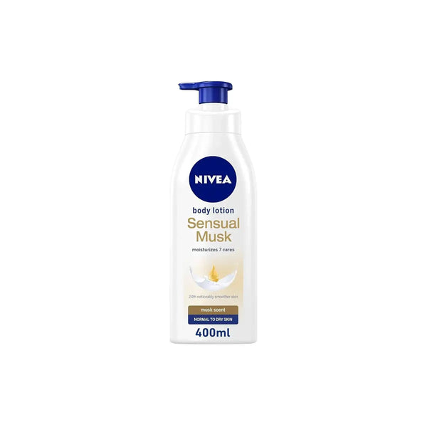 This 400ml NIVEA body lotion in Sensual Musk provides deep hydration for soft, smooth skin. Its formula, enriched with natural oils and a delicate musk scent, nourishes and moisturizes for 24 hours. Enjoy a sensual experience while keeping your skin healthy and moisturized.