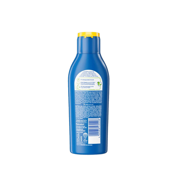 NIVEA Sun Protect & Moisture SPF50 is a 200ml sunscreen formulated to deliver maximum broad-spectrum UVA/UVB protection while sustaining optimal skin hydration. This expert-developed lotion combines high SPF50 protection with advanced moisturizing actives to shield skin from intense sun exposure while preventing dryness and dehydration. The lightweight yet nourishing texture applies smoothly without heaviness or greasiness, making it ideal for daily facial and body application during peak sun exposure. The advanced formula is water-resistant and engineered to withstand swimming and perspiration while the moisture-lock technology ensures skin remains supple and comfortable throughout extended sun exposure. The protect & moisture complex works synergistically to provide superior sun protection with sustained hydration and skin barrier support. Ideal for all skin types, particularly those requiring maximum protection, this sunscreen delivers comprehensive benefits. Apply generously to exposed skin 15 minutes before sun exposure, reapply every two hours or after swimming. Experience maximum sun protection with maintained hydration, enhanced comfort, and visibly healthy, protected skin.