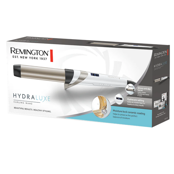 The Hydraluxe Curling Wand gives you beautiful, healthy looking, shiny curls without the worry of excessive heat damage. The Moisture Lock Ceramic Coated Barrel helps to preserve the hair's perfect balance of moisture, while the Hydra care Temperature Setting styles at the lower temperature of 185°C for healthy styling.