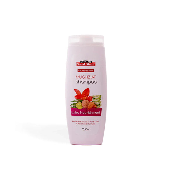 This SAEED GHANI SHAMPOO contains 200ML of MUGHZIAT HERBAL, a natural and herbal blend that cleanses and nourishes your hair. With its rich formula, this shampoo helps to strengthen and revitalize your hair, leaving it smoother, shinier, and more manageable. Experience the benefits of natural ingredients with SAEED GHANI SHAMPOO.