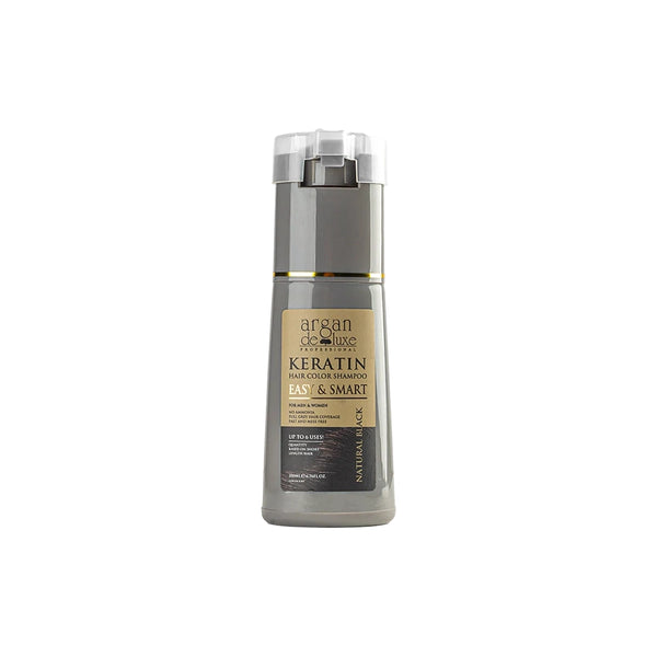 Experience vibrant, long-lasting black hair color with ARGAN DELUXE KERATIN COLOR SHAMPOO. Enriched with keratin and argan oil, this shampoo nourishes and strengthens hair while depositing intense black color. Achieve salon-quality results with every wash. Gentle enough for daily use and suitable for all hair types.