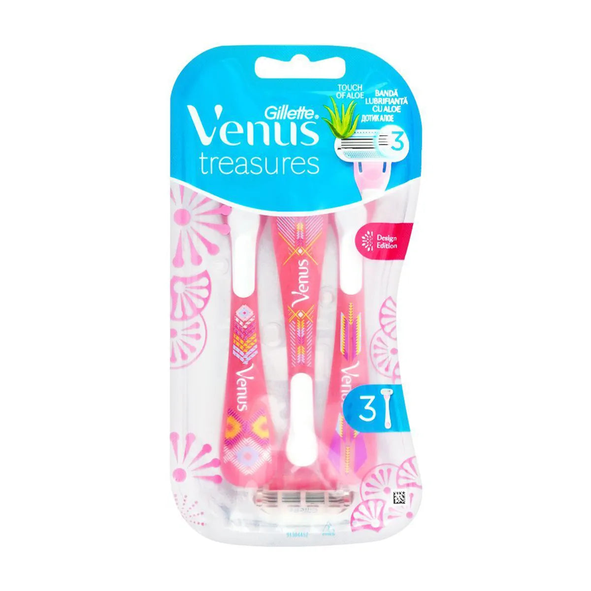 Experience a close and comfortable shave with GILLETTE VENUS TREASURES DISPOSABLE RAZOR 3CS. Featuring a 3-blade design and a moisture-rich strip, this razor delivers a smooth glide while reducing skin irritation. The compact size and ergonomic handle make it perfect for on-the-go touch-ups.