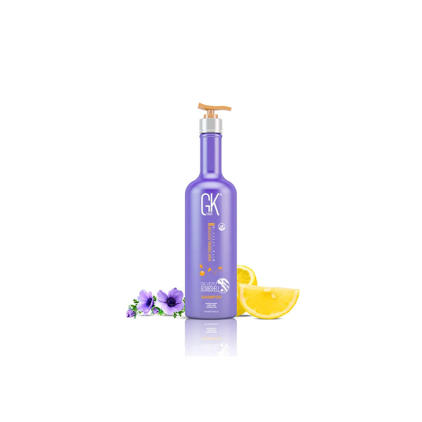 Formulated specifically for blonde, silver, or highlighted hair, GK Silver Bombshell Shampoo neutralizes brassy tones while providing intense hydration. This professional-grade 710ml formula contains violet pigments that maintain cool tones and specialized ingredients that strengthen hair structure, preventing breakage and enhancing shine. Ideal for regular use in color maintenance routines.