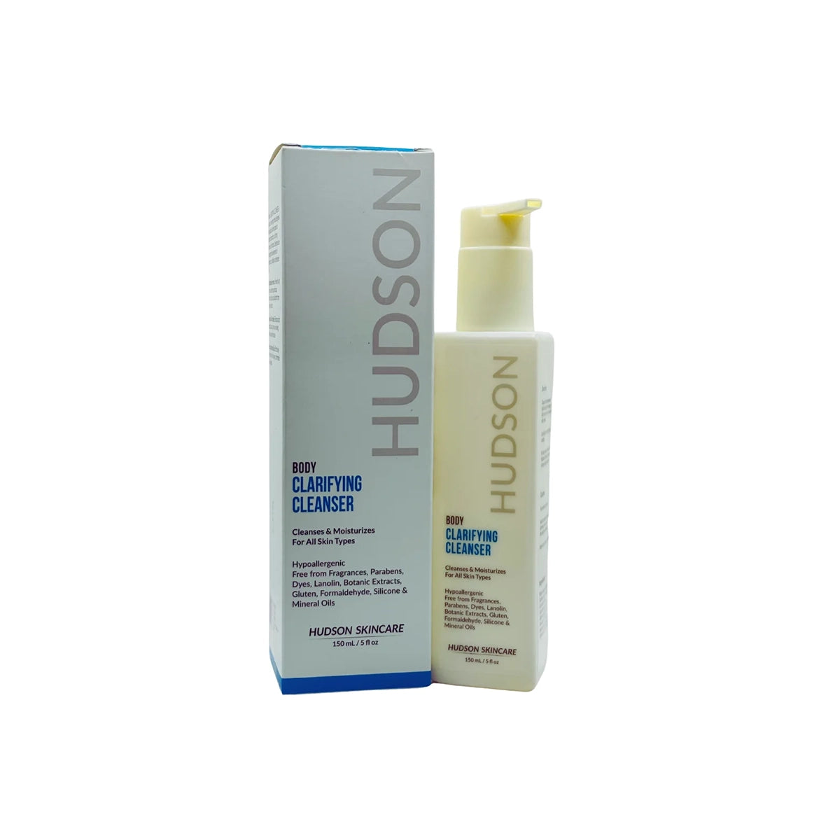 HUDSON BODY CLARIFYING CLEANSER effectively purifies skin with a specialized formula designed to remove impurities and excess oils. This 150ML solution helps prevent breakouts while maintaining skin's natural moisture balance. Formulated with dermatologically-tested ingredients, it addresses body acne concerns without over-drying, leaving skin refreshed, clear, and properly cleansed.