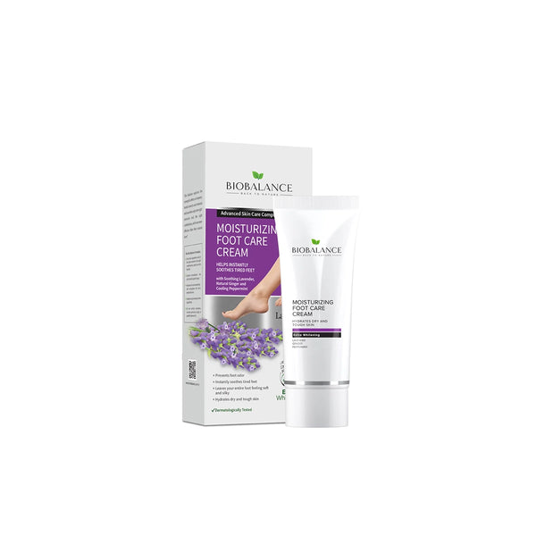 Bio Balance Moisturizing Foot Care Cream 60ml is specially designed to relieve tired, swollen, and fatigued feet while providing intensive hydration for dry, rough, and cracked skin. Its rich formula penetrates deeply to soften and nourish every layer of skin, leaving feet feeling refreshed, silky, and revitalized. Perfect for daily use, this foot cream restores comfort to overworked feet, reduces dryness, and enhances skin smoothness. Its soothing properties make it ideal for people who spend long hours standing or walking.