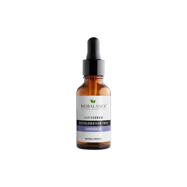 BIO BALANCE Super Serum Discoloration Free (30ML) is a targeted pigmentation treatment designed to visibly reduce dark spots, melasma, and uneven skin tone. Infused with the powerful Diacetyl Boldine molecule in Lumi Skin Complex, this serum neutralizes pigmentation activity and controls melanin production to prevent new discoloration. With consistent use, it helps achieve a clearer, brighter, and more radiant complexion, making it ideal for those struggling with stubborn pigmentation.