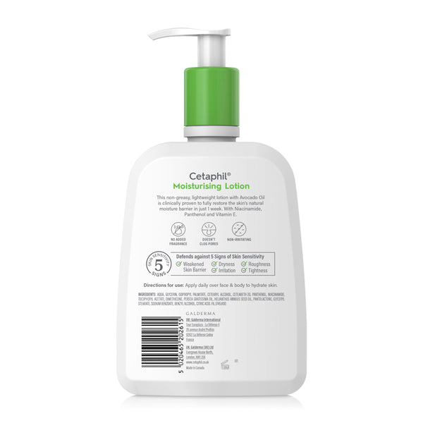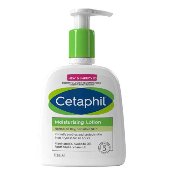 Experience lasting hydration with Cetaphil Moisturizing Lotion 473ML, a gentle, dermatologist-tested formula designed for all skin types, including sensitive skin. Its lightweight, non-greasy and non-comedogenic texture absorbs quickly, leaving skin soft, smooth, and nourished. Enriched with emollients and humectants, this lotion helps retain moisture and restore the skin’s protective barrier. Perfect for everyday use, it provides long-lasting hydration without irritation, making it ideal for face and body. Keep your skin healthy, calm, and deeply moisturized with Cetaphil Moisturizing Lotion — your daily solution for soft, glowing skin.