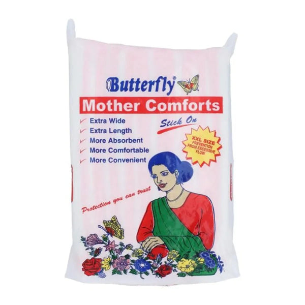 This pack of BUTTERFLY PADS MOTHER COMFORT XXL includes 10 pads designed specifically for mothers' comfort. With a unique butterfly shape and XXL size, these pads provide maximum coverage and protection. Perfect for postpartum needs and overall comfort.