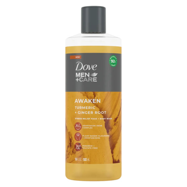 Experience the refreshing and invigorating scent of Dove Men+Care Awaken Turmeric and Ginger Root Body Wash. Formulated with the power of MicroMoisture technology, this body wash cleanses and hydrates your skin, leaving it feeling energized and smelling great all day long. Say goodbye to dull and dry skin with Dove Men+Care.