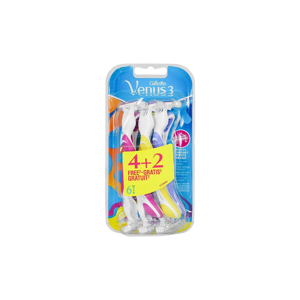 The GILLETTE VENUS 3 DISPOSABLE RAZOR 06CS is a high-quality disposable razor with three blades designed to provide a smooth and precise shave. Each razor is designed to be used up to six times, making it a convenient and cost-effective shaving option. Perfect for on-the-go use or for everyday shaving needs.