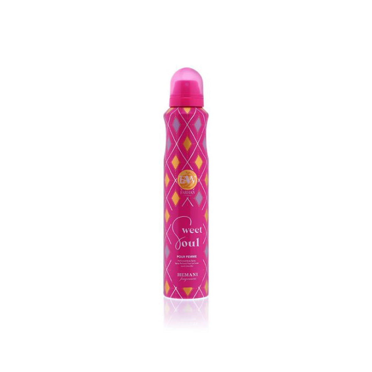 Experience the luxurious and captivating fragrance of HEMANI FAW SWEET SOUL BODY SPRAY 200ML. This exquisite body spray leaves a lasting scent that will leave you feeling refreshed and invigorated. Made with high-quality ingredients, this body spray is the perfect addition to your daily beauty routine.
