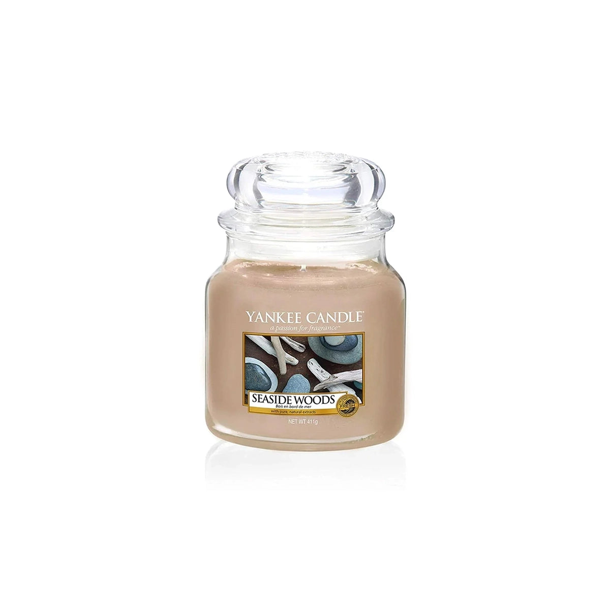 Experience the tranquil essence of coastal living with YANKEE CANDLE 411GM SEASIDE WOODS. This premium scented candle combines notes of driftwood, sea salt, and aromatic cedar to create an atmosphere reminiscent of a serene beachside forest. The substantial 411-gram size ensures long-lasting fragrance diffusion, making it ideal for larger spaces or extended use. Crafted with Yankee Candle's signature high-quality wax blend for a clean, consistent burn.