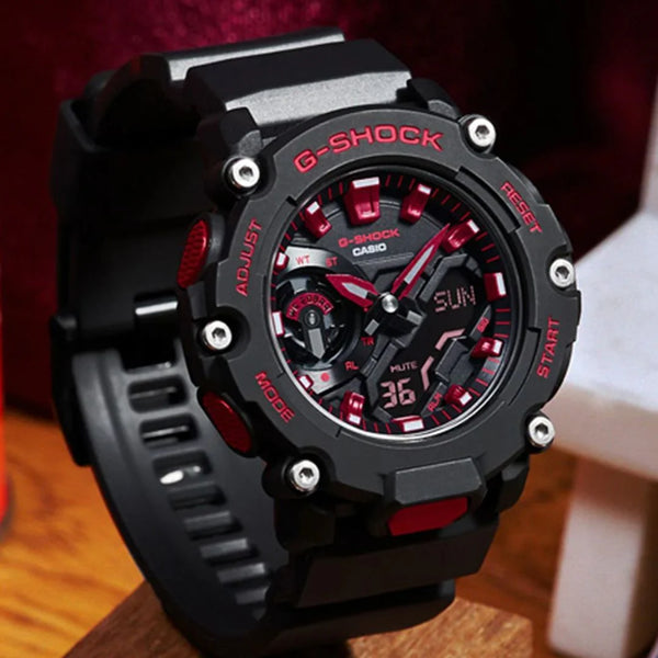Introducing a collection of new G-SHOCK models whose 35mm diameter faces and large cases give them a look of power and strength. Dial rings and raised hour markers create three-dimensional depth that gives the face plenty of character.The popular G-SHOCK three-dial face design incorporates one analog dial in the center, with digital dials on either side.These watches are designed and engineered to deliver outstanding shock resistance and water resistance, as well as anti-magnetism.