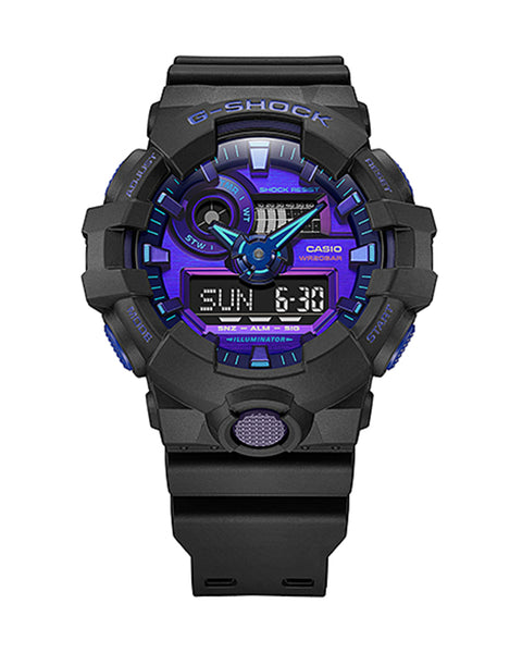 Introducing a collection of new G-SHOCK models whose 35mm diameter faces and large cases give them a look of power and strength. Dial rings and raised hour markers create three-dimensional depth that gives the face plenty of character.The popular G-SHOCK three-dial face design incorporates one analog dial in the center, with digital dials on either side.These watches are designed and engineered to deliver outstanding shock resistance and water resistance, as well as anti-magnetism.