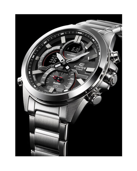 Shock Resistant Mineral Glass 200-meter water resistance Features: Bluetooth, Chronograph, Multi-Function, World time Electro-luminescent backlightAfterglow Flash alertFlashes with buzzer that sounds for alarms, hourly time signals, countdown timer time up alarm 1/100-second stopwatchMeasuring capacity: 00'00"00~59'59"99 (for the first 60 minutes)1:00'00~23:59'59 (after 60 minutes)Measuring unit: 1/100 second (for the first 60 minutes)1 second (after 60 minutes)Measuring modes: Elapsed time, split time, 1st-2nd place times Countdown timerMeasuring unit: 1 secondCountdown range: 24 hoursCountdown start time setting range: 1...