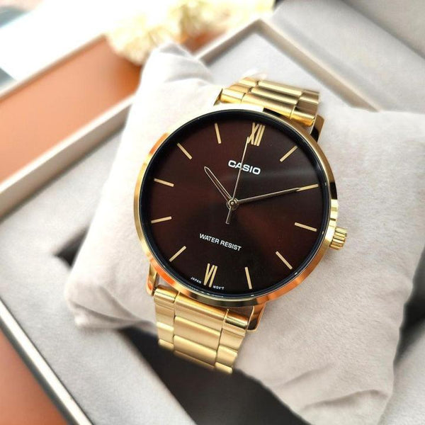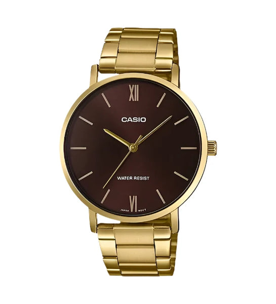 Expertly designed for everyday wear, the Casio MTP-VT01G-5BUDF Men's Gold Tone Stainless Steel Watch offers a stylish and durable option. With water resistance and a stainless steel band, this watch will keep you on time and looking sharp. Featuring regular timekeeping with an accuracy of ±20 seconds per month and a 3-year battery life, you can rely on this watch for your daily needs. Its gold tone and mineral glass make it both functional and fashionable.