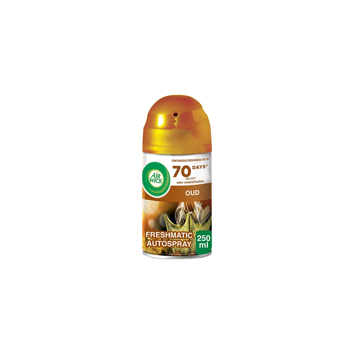 Experience the luxurious essence of Oud with Air Wick Air Freshener Refill 250ml. This premium refill delivers long-lasting fragrance inspired by the rich, woody notes of traditional Oud, transforming your space with its sophisticated aroma. Compatible with Air Wick devices, this 250ml refill ensures consistent fragrance distribution for optimal ambiance in any room.