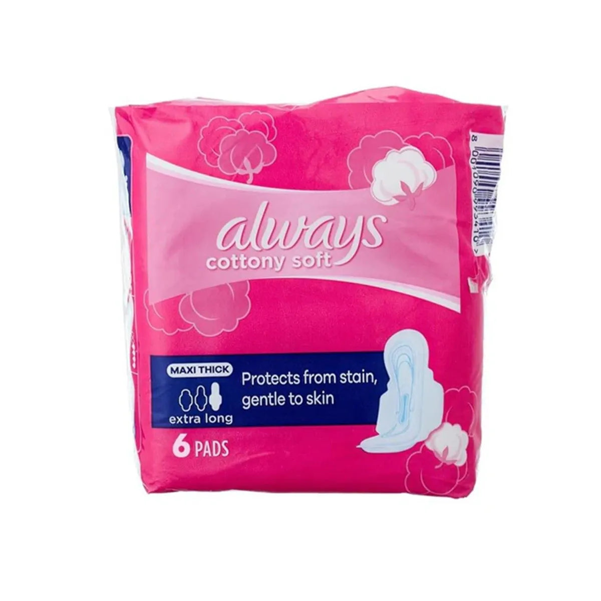 Experience ultimate comfort and protection with ALWAYS PAK MAXI THICK COTTON SOFT EXTRA LONG. Made from high-quality materials, these 6CS sanitary pads provide long-lasting absorbency and unparalleled softness. Trust in our expertly designed product for all-day confidence.