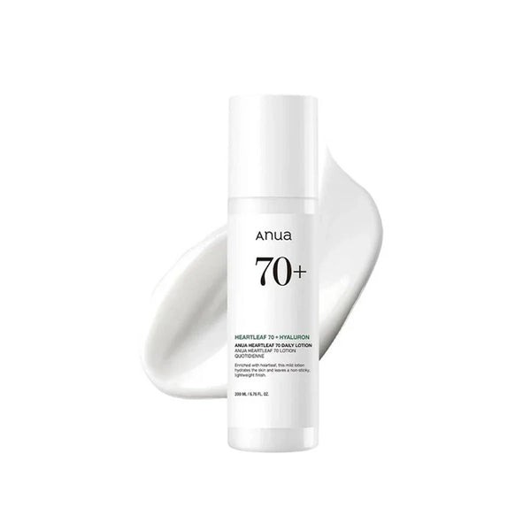 Nourish and calm daily with Anua Heartleaf 70 Hyaluron Daily Lotion, a 200ml lightweight moisturizer combining 70% heartleaf extract with hyaluronic acid. This expertly-formulated lotion delivers dual benefits—heartleaf's powerful anti-inflammatory properties soothe irritation and reduce redness, while hyaluronic acid provides sustained hydration and plumping effects. The fluid, fast-absorbing texture makes it perfect for morning and evening application on all skin types, especially sensitive and reactive complexions. The balanced formulation strengthens your skin barrier without heaviness, ensuring comfort throughout the day. Use as your daily moisturizer to achieve visibly calmer, more hydrated, and resilient skin with enhanced clarity and a refined, healthy complexion.