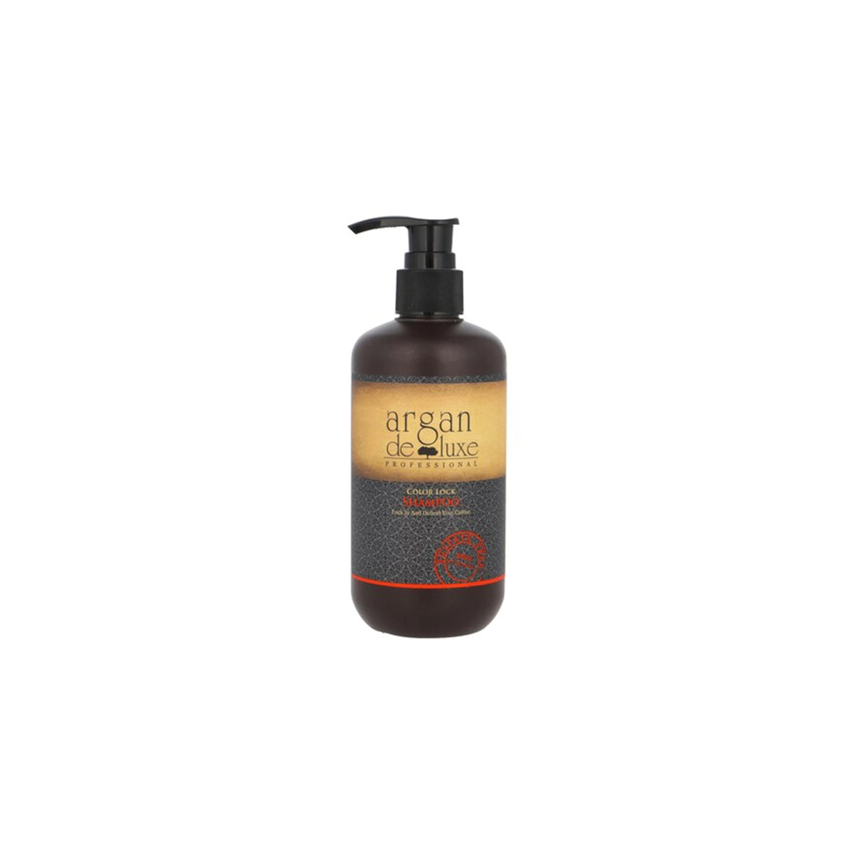 Formulated with the finest Argan oil, ARGAN DE LUXE SHAMPOO 300ML COLOR LOCK gently cleanses and nourishes colored hair, while locking in vibrant color. Expertly designed to strengthen and protect hair, our shampoo leaves locks looking healthier and more radiant. Experience the luxury of vibrant, nourished hair with each wash.