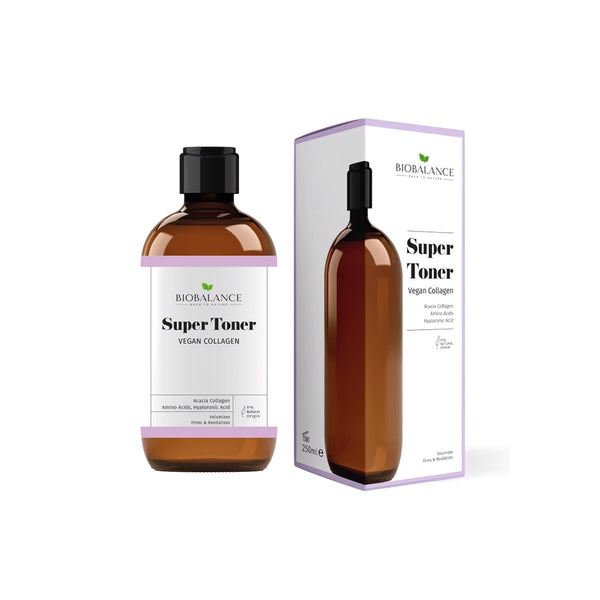 Bio Balance Super Toner Vegan Collagen 250ml is a vegan-friendly skincare essential designed to complete your cleansing routine. Acting as a second cleanse, it removes leftover makeup, dirt, and impurities while delivering intense hydration. Enriched with vegan collagen, glycerin, and lactic acid, this toner helps lock in moisture, combat dryness, and support skin elasticity. The lightweight formula refreshes your complexion, leaving it plump, smooth, and radiant. Perfect for daily use, it preps your skin to better absorb serums and moisturizers.