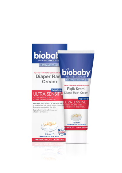 Biobaby rash cream, maintains the integrity of the skin with its black seed oil and walnut oil. Olive oil moisturizes the skin and reduces irritation. Zinc oxide (40%) relaxes the skin and heals diaper rash.
