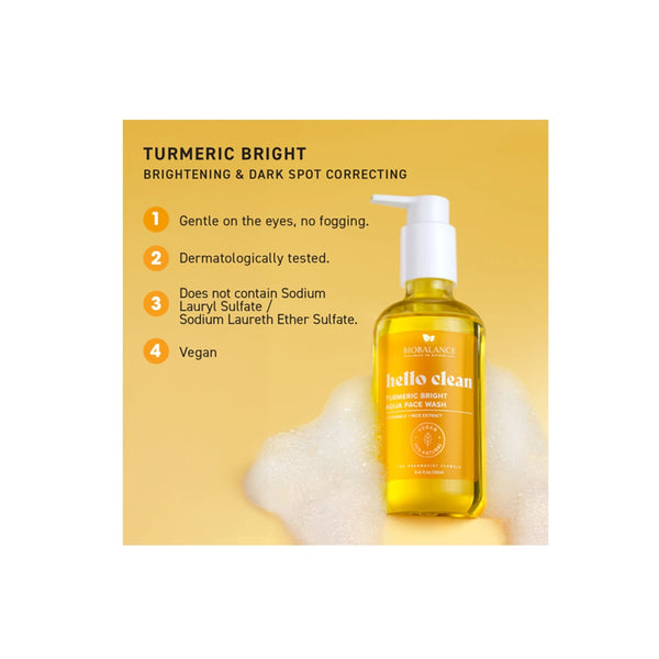 The Bio Balance Hello Clean Turmeric Bright 250ml is a gentle brightening cleanser powered by the natural goodness of turmeric, known for its antioxidant and anti-inflammatory properties. Specially designed to fight dullness, it deeply cleanses impurities without stripping essential moisture. This mild yet effective formula supports a radiant, refreshed, and even-toned complexion, making it ideal for daily use. Perfect for all skin types, it helps improve clarity and keeps your skin healthy, smooth, and glowing.