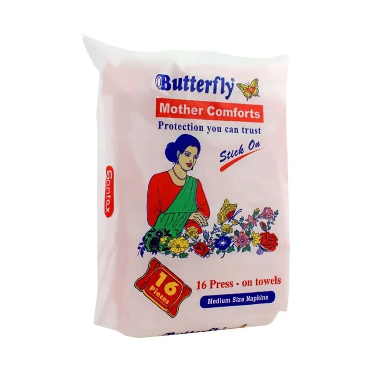 Introducing BUTTERFLY PADS MOTHER COMFORT MEDIUM 16CS, the perfect solution for new moms. With its unique butterfly shape, it provides maximum comfort and absorbency during postpartum recovery. Its medium size ensures a secure fit, and the pack includes 16 pads for convenience. Trust in our expertise for a comfortable and worry-free experience.