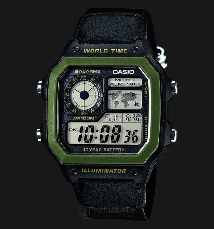 The Casio AE-1200WHB-1BVDF Digital Watch combines durability, functionality, and modern design — ideal for men who travel and explore. With a 10-year battery life and 100-meter water resistance, this timepiece ensures reliability wherever you go.