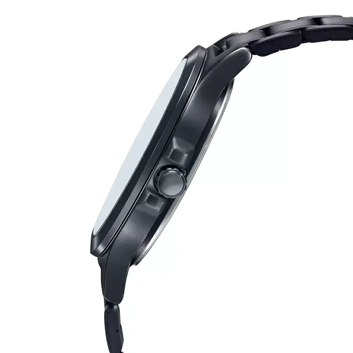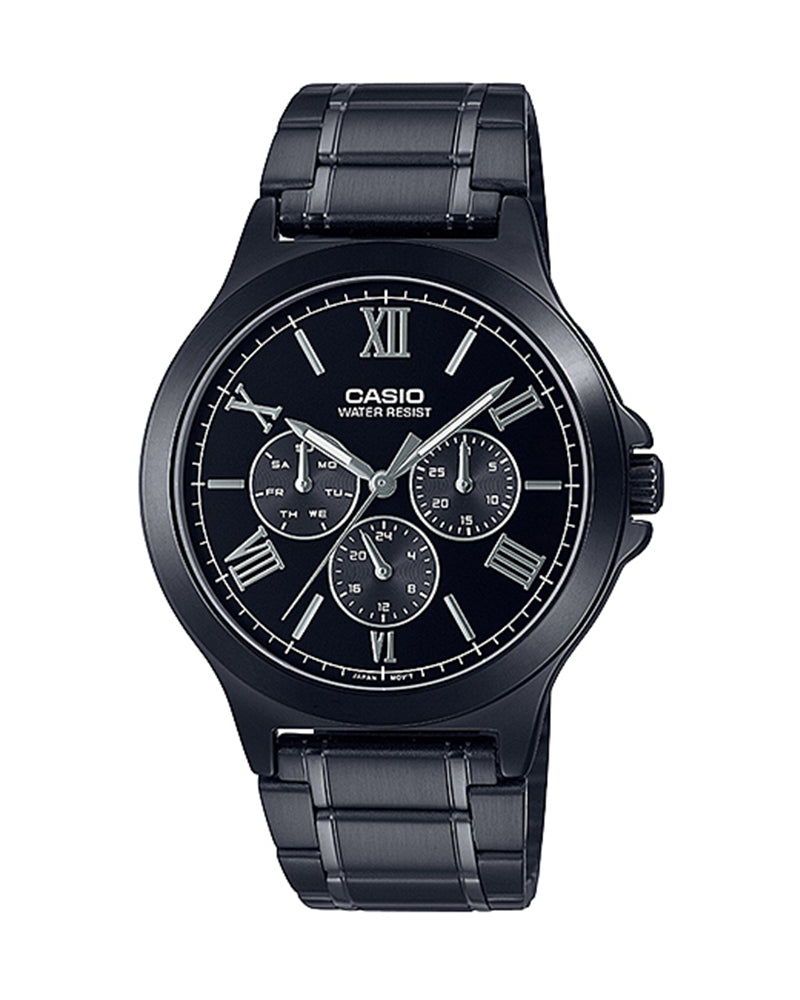Upgrade your wristwear with the Casio MTP V300B 1AUDF Analog Watch, combining style, durability, and precision. Featuring a stainless steel band with a triple-fold clasp and durable mineral glass, this watch offers long-lasting performance and a sophisticated look. Its analog display includes 3 hands (hour, minute, second) with ±20 seconds/month accuracy, ensuring reliable timekeeping.