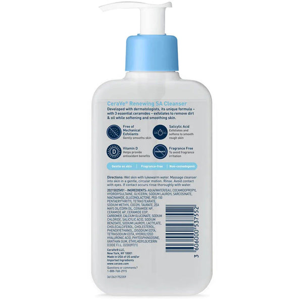 A gentle salicylic acid wash helps molt and soft your skin while also gently removing harmful environmental components, wiping away the dead cells, and softening rough skin—without getting the skin dry. Washing with CeraVe SA Renewing Cleanser, a salicylic acid cleanser mixed with barrier-restoring ingredients like ceramides, keep the moisture in while keeping irritants out. CeraVe Renewing SA Cleanser for body and face provides gentle yet non-irritating exfoliation without triggering microbeads that may scratch your skin. Hence,...