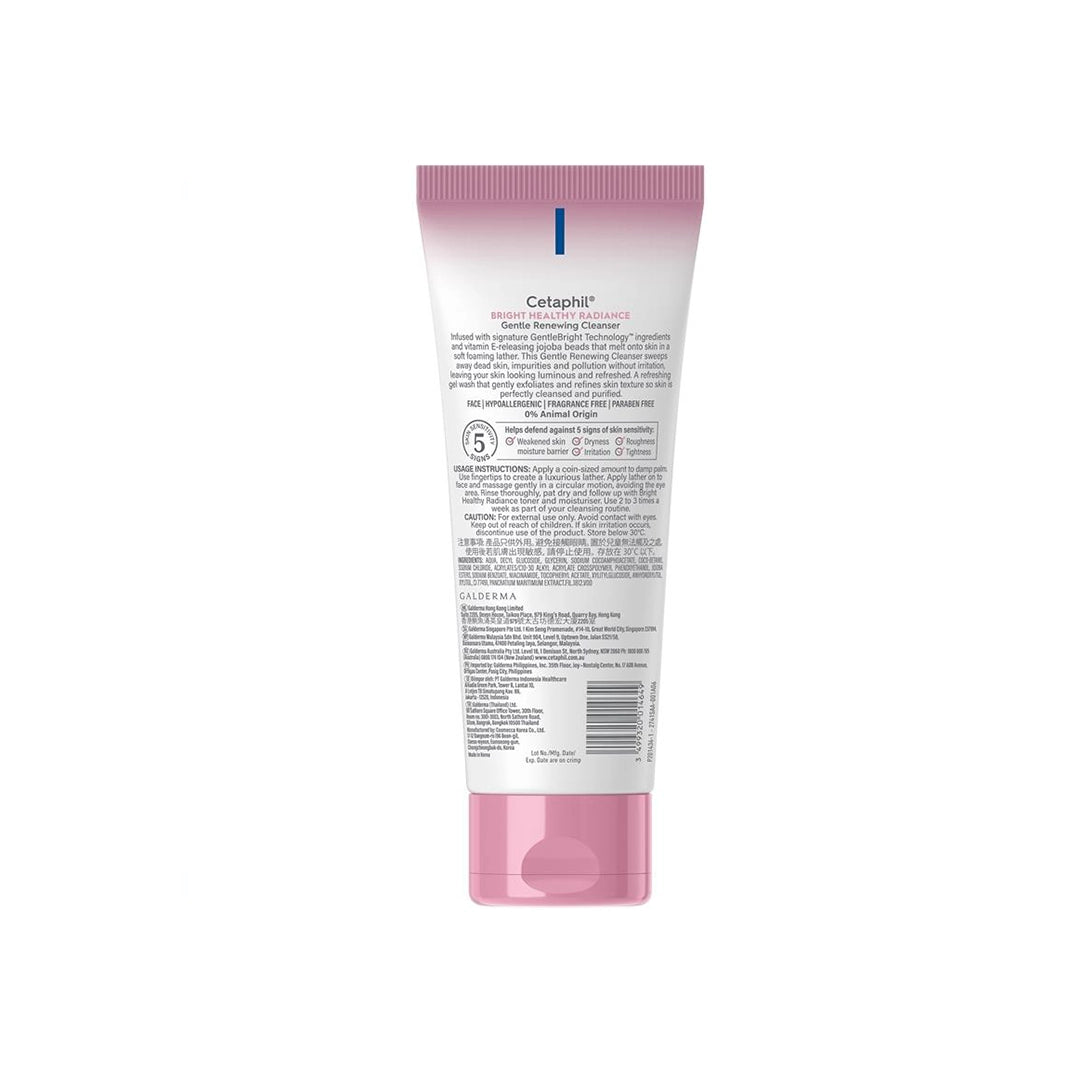 Reveal your skin’s natural glow with Cetaphil Bright Healthy Radiance Gentle Renewing Cleanser 100g. Powered by GentleBright Technology and vitamin E–infused jojoba beads, this foaming cleanser gently exfoliates dead skin cells and removes dirt, oil, and pollution without irritation.