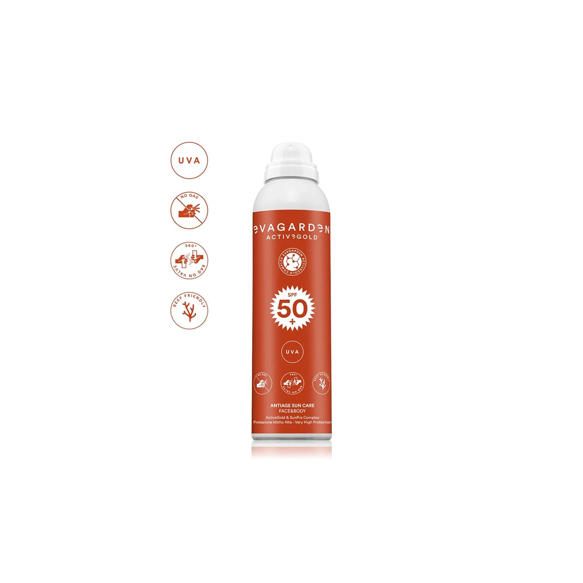 EVAGARDEN ACTIVEGOLD ANTIAGE SUN CARE FACE&BODY SPF50 150ML provides ultimate protection against harmful UVA and UVB rays. Its high SPF50 formula is enriched with ActiveGold technology, which helps prevent premature aging and protects the skin's natural moisture barrier. Suitable for both face and body, it is perfect for all-day sun protection.
