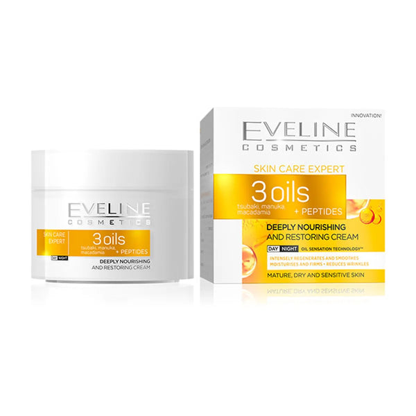 Expertly formulated with a blend of three nourishing oils, EVELINE 3 OILS DEEPLY NOURISHING CREAM provides 24-hour hydration and protection for your skin. This dual-action cream is suitable for both day and night use, leaving your skin visibly smoother and more radiant.
