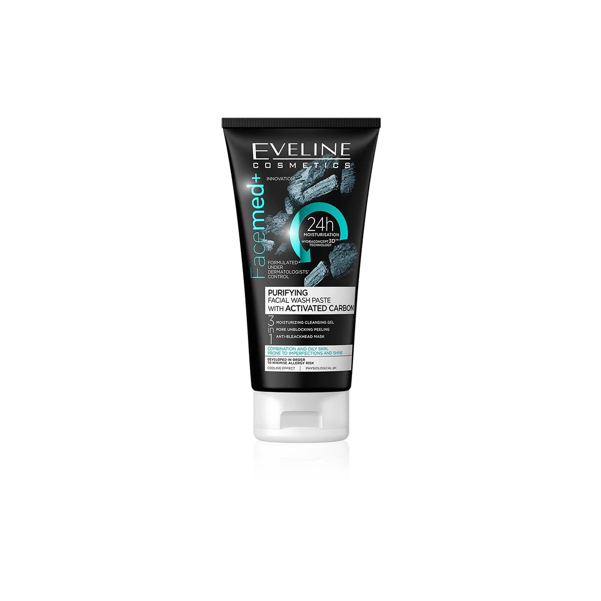 EVELINE FACEMED FACE WASH PASTE provides a deep, purifying cleanse with activated carbon. Non-drying formula removes impurities and excess oil without stripping skin. Skin is left feeling clean, refreshed, and balanced. Dermatologically tested.