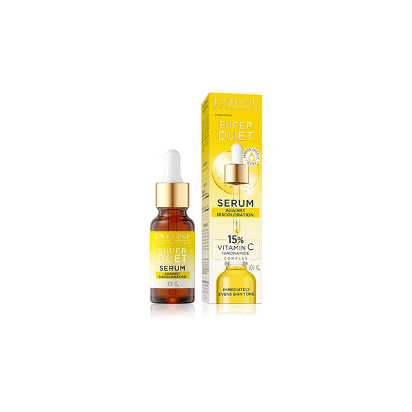 Boost your skin's radiance with EVELINE SUPER DUET VITAMIN C 15% FACE SERUM 18ML. This powerful serum contains 15% Vitamin C to brighten and even out skin tone while promoting collagen production. Achieve a smoother, healthier complexion with this expertly formulated serum.